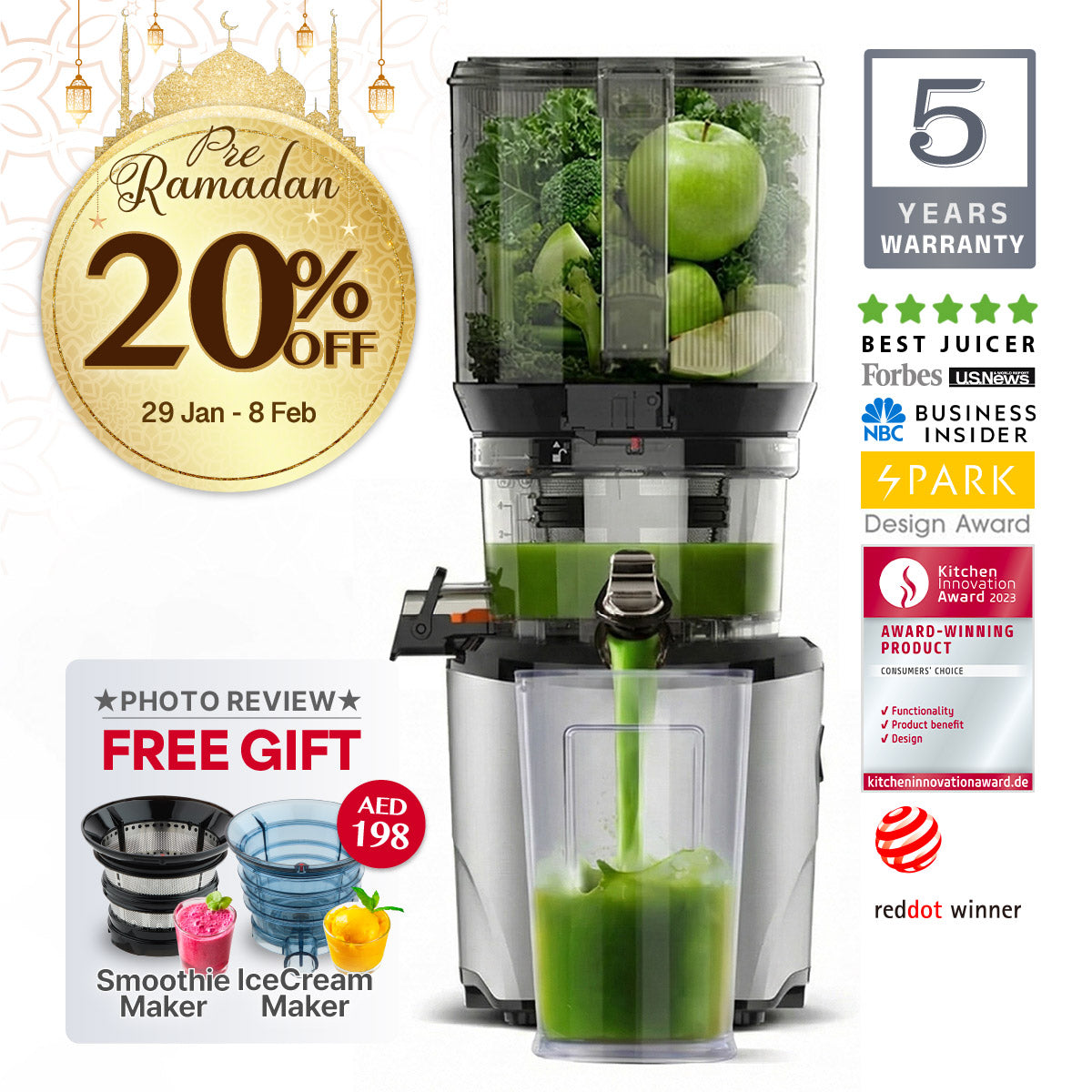 With your Kuvings Whole Slow Juicer, you can create dairy-free fruit ice cream and sorbet with the included blank strainer attachment.