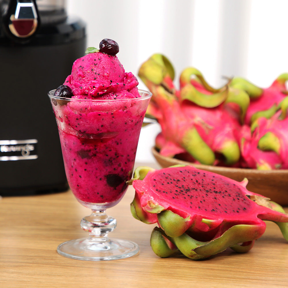 This 'nice cream' might be too pretty to eat, but the delicious pairing of dragon fruit and banana is simply irresistible. Good thing your juicer handles sorbets like a pro!